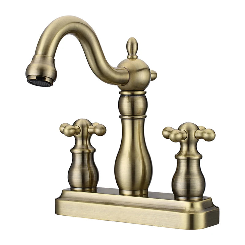 A|M Aquae double handle retro vintage antique brass bathroom sink basin mixer faucet
