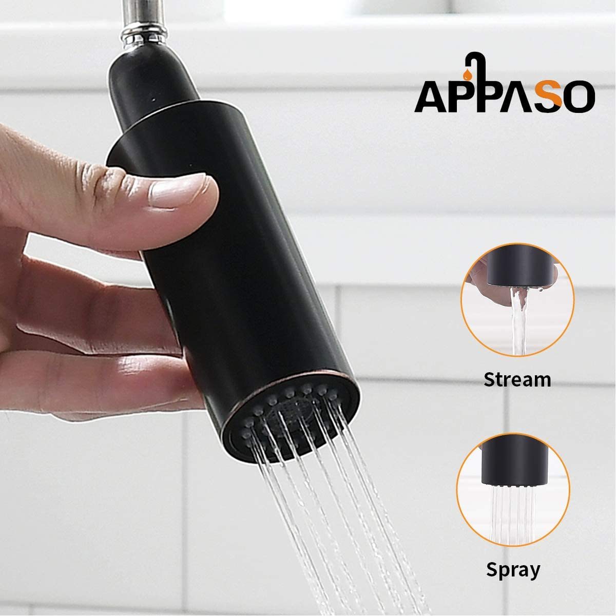 EASY TO OPERATE -- Commercial kitchen faucets with 2 mode sprayers allow you to easily switch from a splash-free inflation flow to a powerful pre-flush spray. Faucet Height is 19.5 inch, Spout reach is 8.7 inch and Spout height 6 inch.